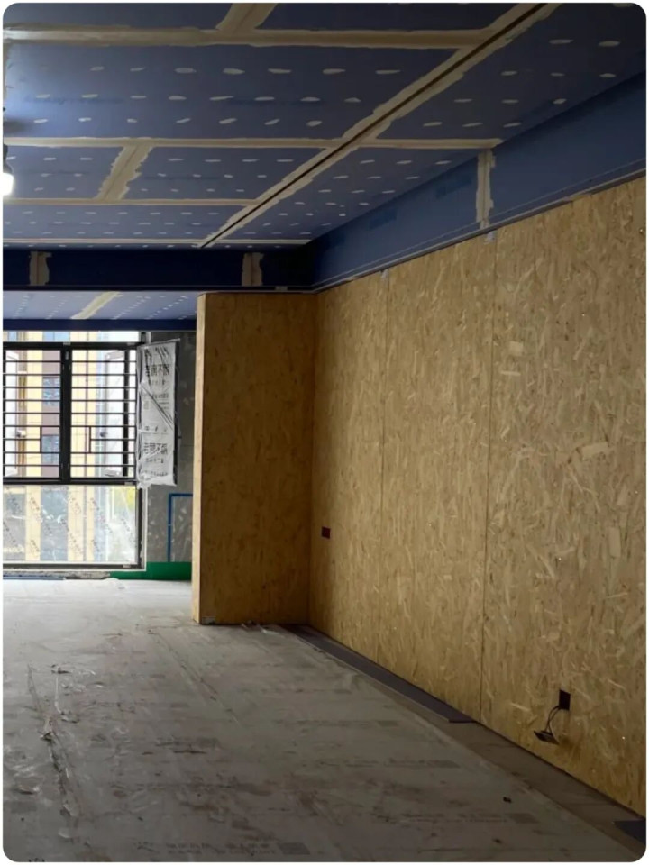 ▲空调风口位置须用欧松板衬底作基层,如风口过长,需要欧松板拼接,接头不得在出风口正对出风的位置,油漆时统一刷黑。