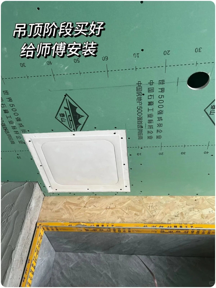 ▲厨房油烟机、热水器上方都需要预留检修口,其他区域顶部有排水管道存水弯相应的也须留有检修口;检修口最好买成品型材,也就二十元左右,避免现场木工做的豁牙漏齿。