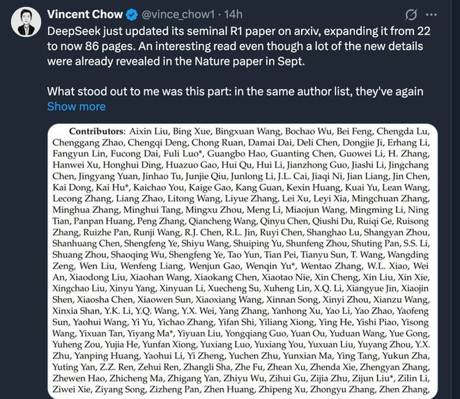 从22页到86页,DeepSeek补上的是可复现性。这也引出了一个问题,为什么选择在这个时间点做这件事?
